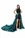 Vestido verde esmeralda maxi con corset ilusión de varillas y pedrería, tirantes delgados, falda satinada con drapeado y Abertura Alta, ideal para gala o boda de noche.