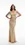 Vestido oro rosa maxi de satín con corset ilusión bordado y mangas largas en transparencia, con Abertura Alta y cola ligera, ideal para gala o boda de noche.