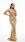Vestido champagne maxi de satín con escote V y tirantes delgados, drapeado anudado al frente y falda fluida Corte-A, ideal para boda, gala o graduacion de noche.