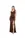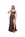 Vestido largo chocolate con escote asimétrico y drapeado, elegante y minimalista para eventos formales.