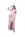 Vestido rosa palo maxi de tela lisa con hombros caídos y pliegues en el busto, silueta entallada y abertura lateral elegante, ideal para boda o graduacion.