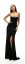 Vestido bicolor con top dorado bordado floral y falda negra vaporosa asimétrica. Tirantes delgados y moño en cintura para un look elegante y moderno.