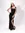Vestido Bicolor Top Dorado Bordado y Falda Negra Asimétrica con Moño en Cintura